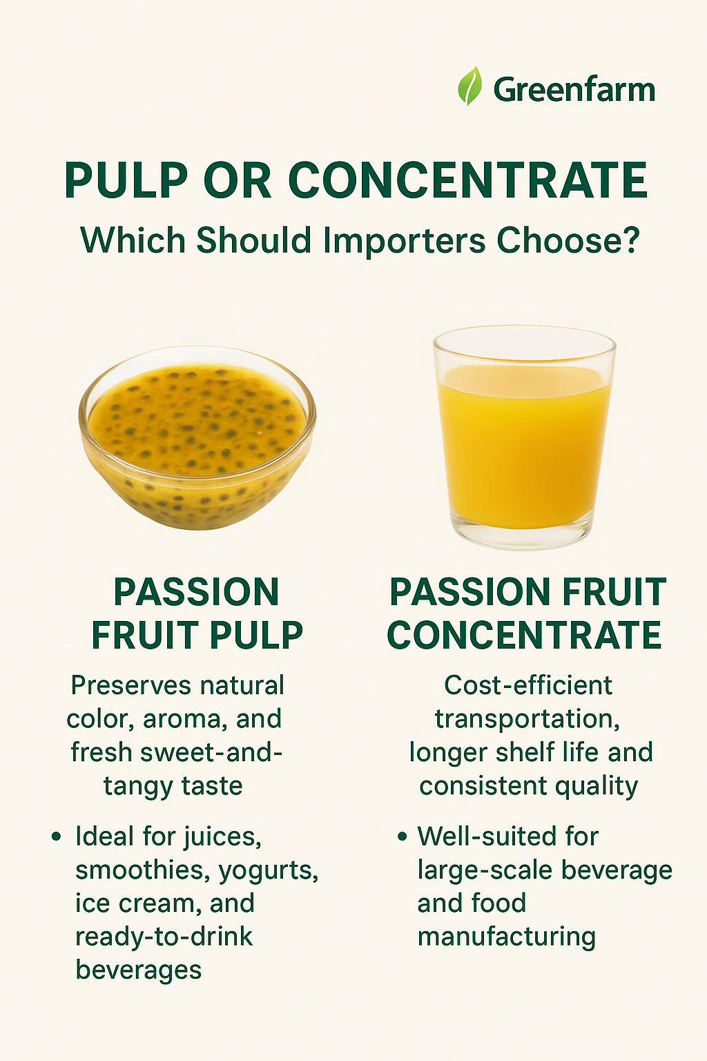 When sourcing frozen passion fruit juice, many importers often ask: Passion fruit juice or concentrated juice – which is the right choice?